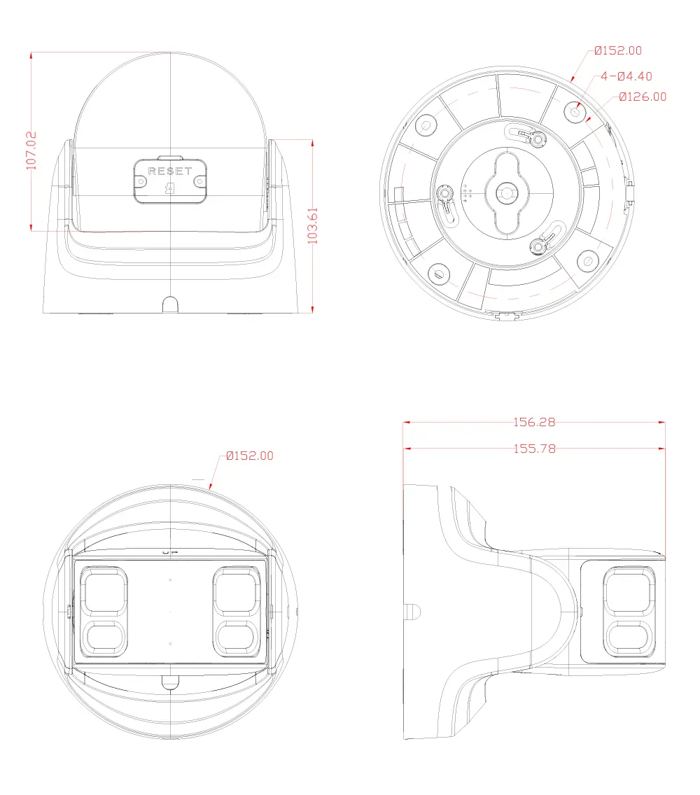 Za ostrý obraz v různých scénách a vynikající světelnou propustnost F1.0 jsou odpovědny objektivy s ohniskovou vzdáleností 4 mm, což odpovídá horizontálnímu úhlu záběru (FOV) 200°. Tyto objektivy jsou již od výroby nastaven na ostření od 0,5 metru až do nekonečna, což znamená, že bez ohledu na směr, do kterého je kamera namířena, nebo jak bude vypadat snímaná scéna, obraz bude v tomto rozsahu vždy dokonale ostrý. Navzdory relativně širokému úhlu záběru nedochází k zkreslení nebo "sudovité" deformaci obrazu, kterou známe z levnějších bezpečnostních kamer. Tento fakt je ještě umocněn další vynikající funkcí bezpečnostní kamery - kompenzací zkreslení, kterou lze aktivovat v rámci nastavení kamery.