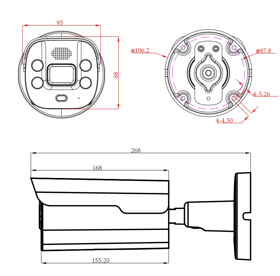 Kameru je možné díky 3D držáku/3D základně namontovat na stěnu i strop a nastavit do prakticky jakéhokoli úhlu. Díky vysokému krytí IP67 a hliníkovému tělu je určena pro vnitřní a venkovní instalace, kde odolá rozmarům počasí po celý rok. Délka přívodního kabelu je 25cm a průchodu středem těla, proto je je možné kameru montovat přímo nad připravený otvor, do kterého se kabel zavede. Součást balení jsou vruty a hmoždinky. Kamera je také kompatibilní s kabelovým boxem.