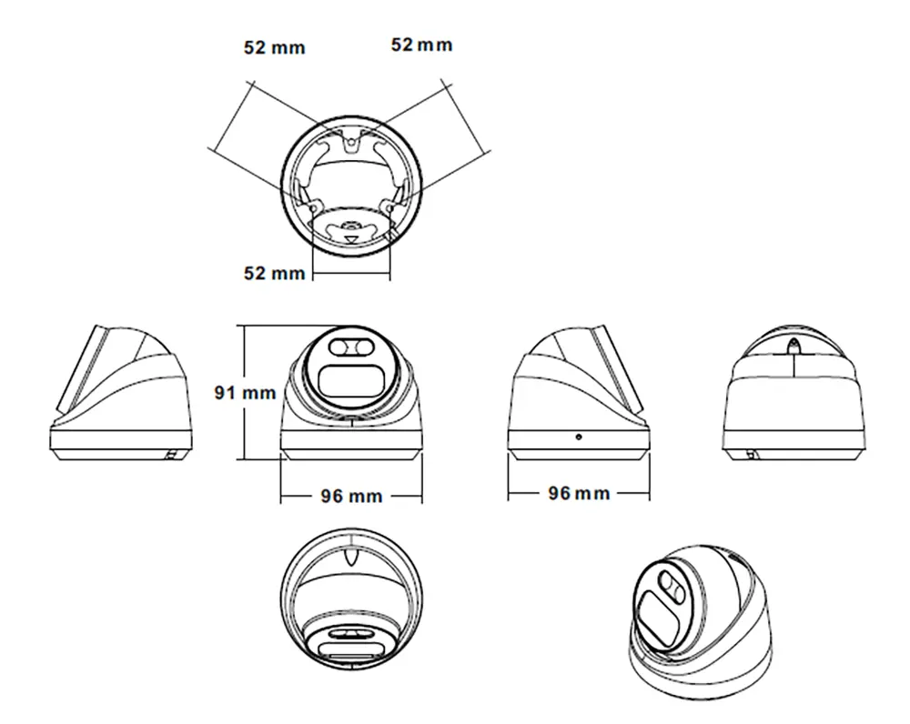 Kameru je možné díky 3D držáku/3D základně namontovat na stěnu i strop a nastavit do prakticky jakéhokoli úhlu. Díky vysokému krytí IP67 a hliníkovému tělu je určena pro vnitřní a venkovní instalace, kde odolá jakýmkoli rozmarům počasí po celý rok. Délka přívodního kabelu je 25cm a průchodu středem těla, proto je je možné kameru montovat přímo nad připravený otvor, do kterého se kabel zavede. Součást balení jsou vruty a hmoždinky. Kamera je také kompatibilní s kabelovým boxem a distančním držákem, které naleznete níže v příslušenství.