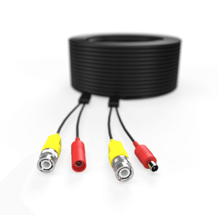 Kabel je dodáván kompletně osazený — na obou koncích najdete BNC konektor pro videosignál a napájecí konektor DC. Stačí zapojit kameru na jednom konci a DVR rekordér s napájecím adaptérem na druhém. Žádné lisování, žádné měření — instalace trvá minuty, ne hodiny.