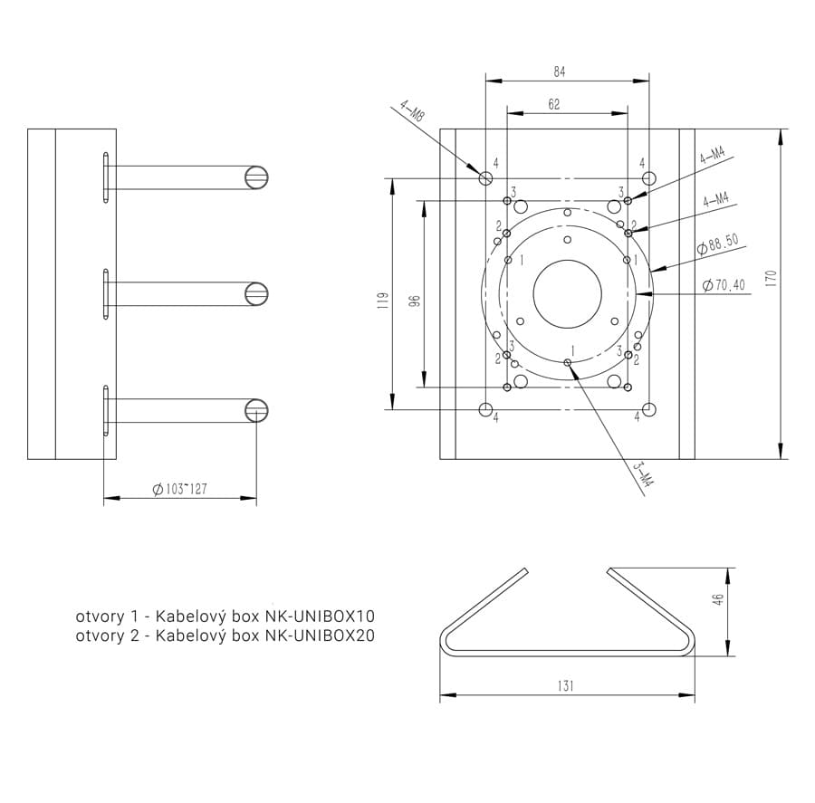 Držák je navržen tak, aby byl plně kompatibilní s kamerami a kabelovými boxy z nabídky PATRONUM. Kabelový box lze připojit přímo do sestavy, čímž vznikne čisté a mechanicky odolné řešení bez volně visících kabelů — důležitý detail zejména u venkovních instalací vystavených povětrnostním vlivům.