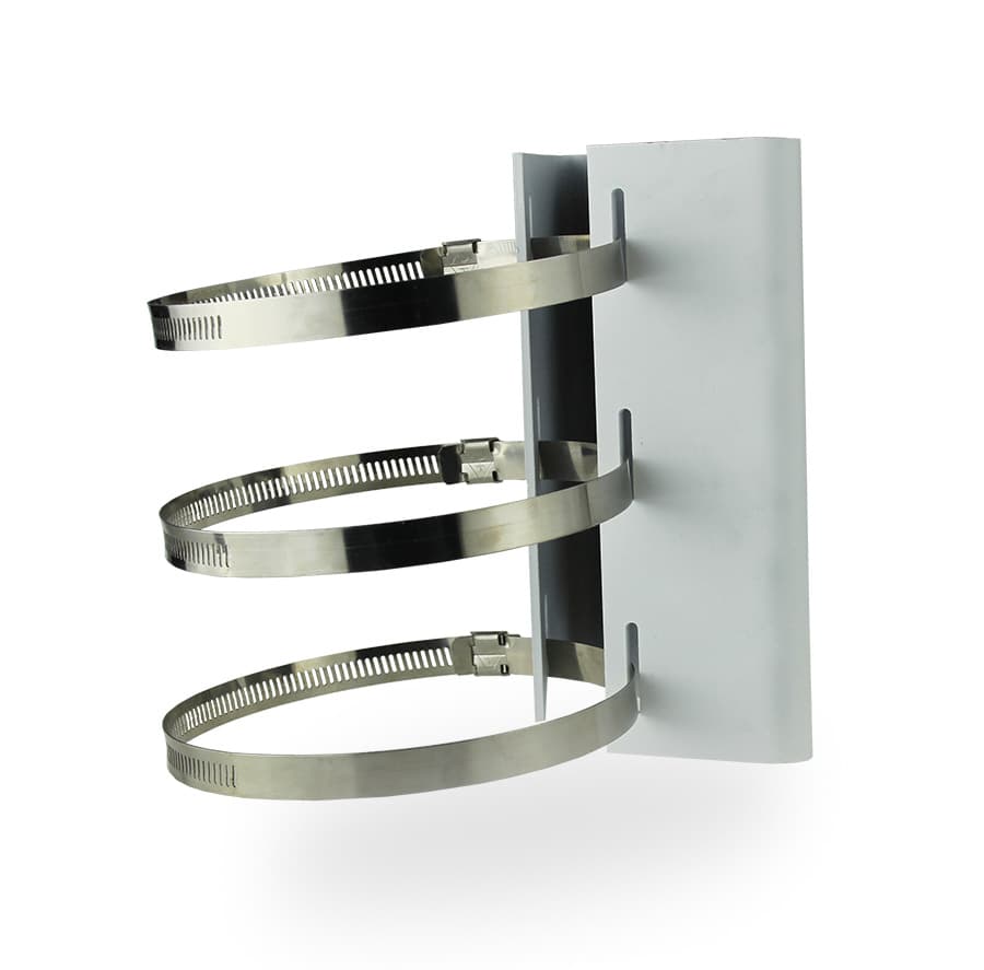 PATRONUM PRDS70 je sloupový držák určený pro montáž bezpečnostních kamer na kulaté sloupy — například osvětlovací stožáry, plotové sloupky nebo průmyslové nosníky. Standardně pojme sloupy do průměru 140 mm, ale díky možnosti kombinace s děrovanou pásovinou jej lze přizpůsobit prakticky libovolnému průměru.