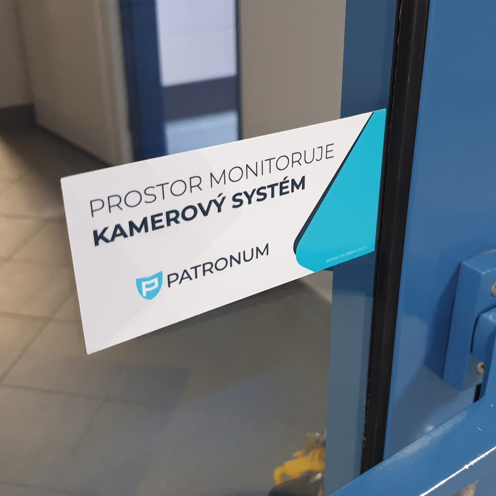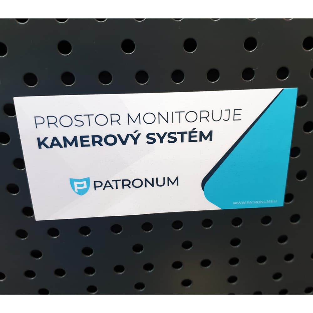 Samotná nálepka odradí příležitostné pachatele, kteří nechtějí riskovat. Pro skutečnou ochranu s důkazním materiálem ji ale doporučujeme kombinovat s některou z kamer PATRONUM — samolepka pak slouží jako viditelné varování, že kamerový systém je skutečně v provozu, nikoliv jen jako atrapová zástrašovací pomůcka. Hodí se také jako náhrada za opotřebovanou nebo poškozenou původní nálepku u stávající instalace.